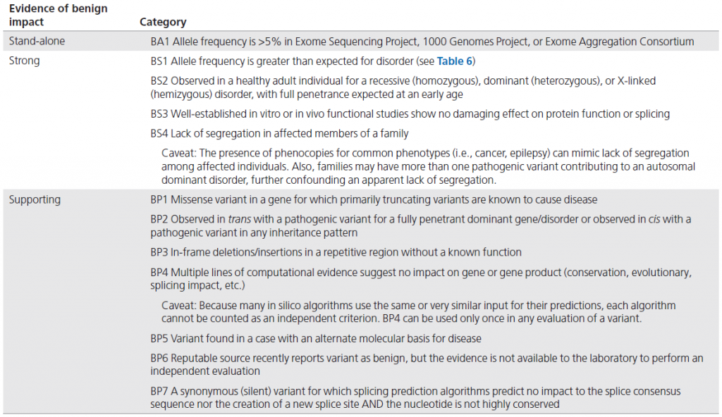 可能良性的 (i) 1个强(BS1-BS4)和1个支持(BP1-BP7)或