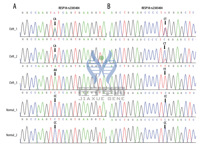 • rs2385404rs2385405 是在RESP18基因中的两个已知变异位点,Sanger测序技术确认了这些变异的存在。
